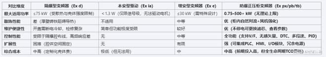 ▶特别价值:在需要频繁启停、宽范围调速(0–1000Hz)、高动态响应(如挤出机螺杆同步)、多机联动(张力控制)的工艺中,正压柜方案是唯一兼顾安全与性能的选择。四、典型应用场景与成功案例化工行业——反应釜搅拌系统某聚碳酸酯装置中,3台110kW搅拌电机需在氢气+氯甲烷混合环境中(Zone1)实现0–30rpm精确恒扭矩控制。采用ExpxIIBT4Gb正压柜变频器(内置ACS880),柜内正压维持120Pa,氮气保护,连续运行5年零非计划停机,较原隔爆方案节能12%(优化低速段效率)。煤矿行业——主通风机变频改造井口瓦斯抽采站,2×315kW轴流风机需根据瓦斯浓度动态调节风量。选用ExtbIIICT100°CDb粉尘+ExpxIIAT4Ga气体复合型正压柜(双认证),实现Zone20(煤尘)与Zone1(CH₄)双重防护,通过压力风量PID闭环,年节电超180万度。新能源行业——正极材料烧结窑传动磷酸铁锂前驱体煅烧线kW)处于高浓度LiFePO₄粉尘(导电性、MIT=380℃)与微量有机溶剂蒸汽环境中。采用导电粉尘强化型正压柜(等电位接地+静电消除+O₂监测),杜绝粉尘积聚引发的爬电与闪络,保障连续300天无故障运行。五、选型关键:六问法精准锁定最优解1.问环境:属于气体Zone0/1/2?还是粉尘Zone20/21/22?是否存在复合危险(如粉尘+可燃气体)?→决定防爆型式(px/pb/tb)与认证等级。2.问负载:电机功率、极数、额定电流、惯量、启停频次、是否重载/堵转?→匹配变频器型号与柜体散热设计。3.问气源:现场是否有稳定洁净压缩空气(露点≤20℃,含油量≤0.01mg/m³)?能否提供氮气?→决定供气方案与能耗成本。4.问控制:是否需ProfibusDP/Profinet通讯?是否需多段速、PID、转矩控制?是否需与DCS硬接线联锁?→明确变频器功能与柜内I/O配置。5.问安装:空间是否受限(壁挂/落地)?环境温度是否>45℃?是否存在振动/腐蚀?→影响柜体结构与材质选型。6.问运维:是否具备定期更换滤芯、校验压力传感器的能力?是否需远程监控?→决定是否配置智能HMI与IoT模块。六、未来趋势:从“被动防护”迈向“主动预测”▶绿色低碳化:氮气闭环系统普及,搭配制氮膜组或PSA模块,降低运行成本;▶数字孪生化:柜内压力、温度、滤芯压差、变频器参数全量上云,AI模型预测滤芯寿命与气源衰减;▶功能安全深度融合:SIL2认证正压控制器与变频器安全功能(SafeTorqueOff,SafeLimitedSpeed)协同,满足ISO138491PLe要求;▶模块化快速交付:标准化柜体尺寸(如600×800×2200mm)、即插即用变频器支架、预制电缆接口,交付周期缩短40%。